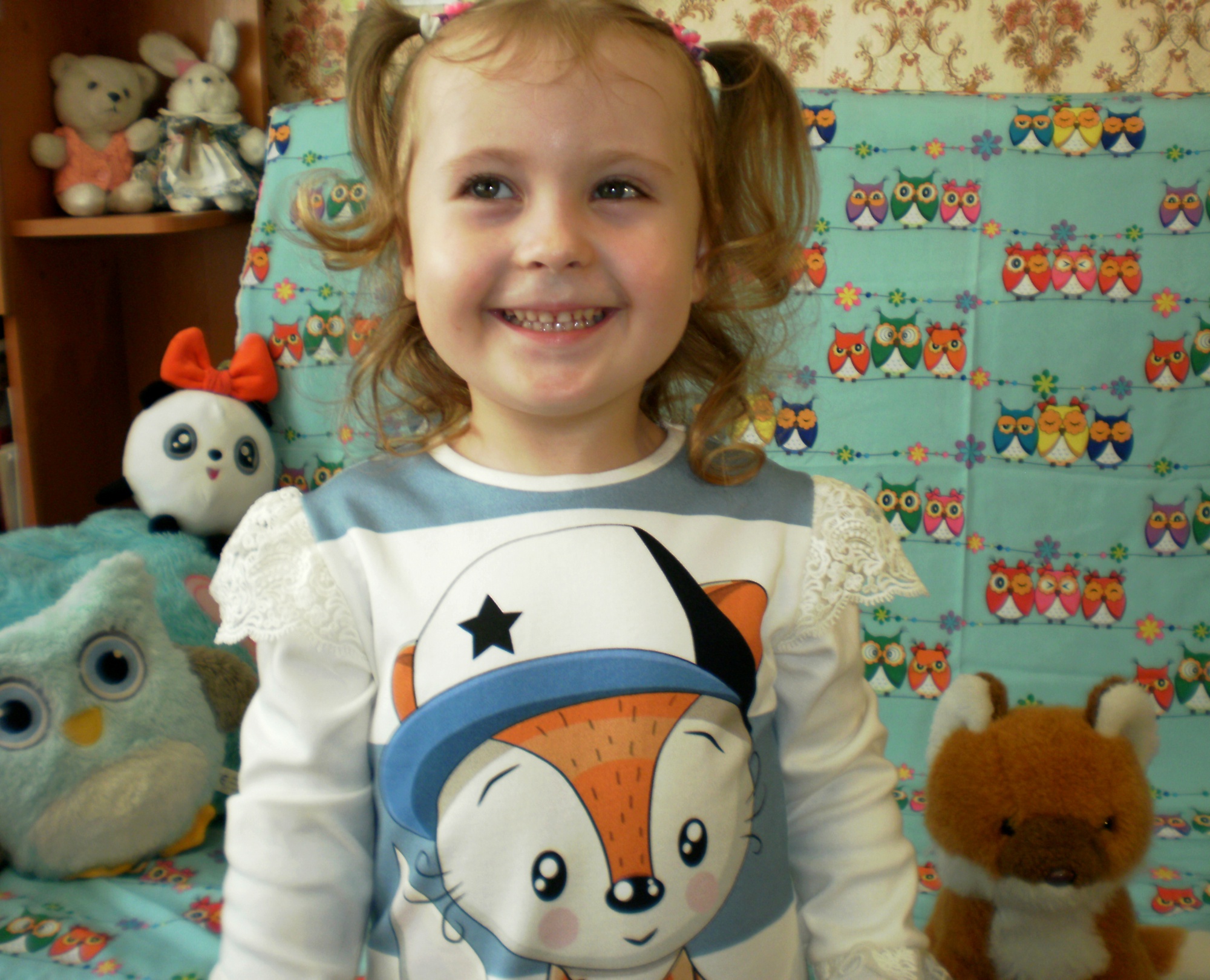 у нас с Соней юбочки из одинаковой ткани, носим их тоже с единорогами, а фото еще не сделала.