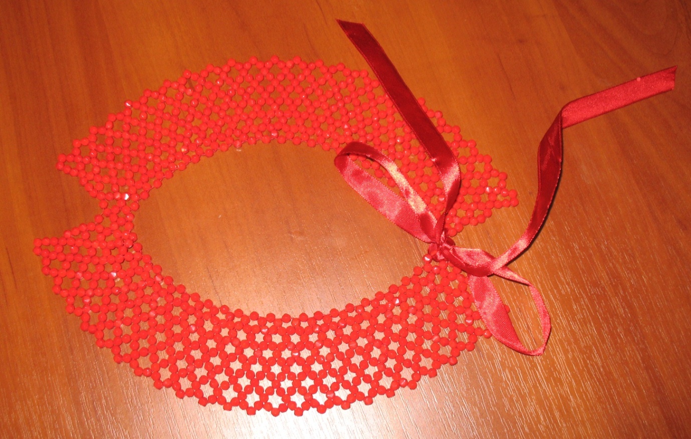 Brightfox Опубликовано 12 января, 2013 Автор Поделиться #476 Опубликовано 12 января, 2013 (изменено) Давно собиралась сшить съемный воротничок, долго думала какой его сделать, на стойке или без, чем украшать и прочее.... В результате решила сплести его из бисера. Здесь на фото украшение на ленточке, но мне не очень нравится, надеюсь найти в магазинах какую-то подходящую застежечку. С бисером раньше не работала, поэтому интернет нам в помощь, вот и нашла самую простую схему зубчиками. Бисер этот - бывшие мамины бусы, кажется чехословацкие, в общем раритет :) Форма бусин не круглая, а с гранями, очень симпатично смотрится, дает отблеск без эффекта елочной мишуры. Изменено 12 января, 2013 пользователем Brightfox С уважением, ЕленаВязаниеШитье *Наиболее доверчивы самые серьезные люди* Ссылка на сообщение Поделиться на другие сайты Поделиться