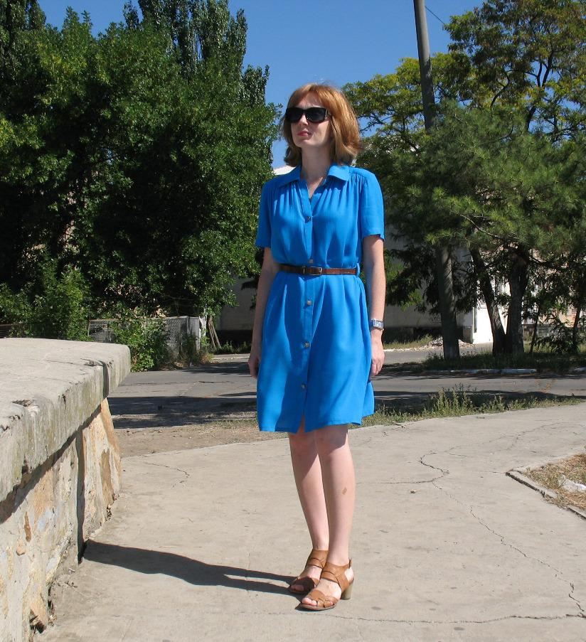 Brightfox Опубликовано 3 августа, 2014 Автор Поделиться #756 Опубликовано 3 августа, 2014 (изменено) Платье-рубашка из штапеля. Фасон самый простой - прямая основа под пояс, коктека, воротник и застежка с планкой, но поскольку это мой "любимый" штапель, то пришлось с платьем повозиться, сначала оно было макси-длины, но на примерке оказалось что этот цвет очень уж активный, и решила я его обрезать до своей привычной длины около колен, из подола сделала карманы в швах. Потом было решено носить платье с коричневым кожаным ремнем, опять же для того чтоб разбить этот яркий бирюзовый монолит, ну и после первой же стирки платья у него повело низ, хотя я вроде бы и старалась не терять долевую при раскрое, однако пришлось все ровнять по новой. В итоге нынешнее платье стало чуть короче, но сейчас я им вполне довольна. И еще мне очень нравятся пуговицы- как говорится, мелочь, а приятно - они металлические, с рыбачком, сидящем в лодке :) Изменено 3 августа, 2014 пользователем Brightfox С уважением, ЕленаВязаниеШитье *Наиболее доверчивы самые серьезные люди* Ссылка на сообщение Поделиться на другие сайты Поделиться