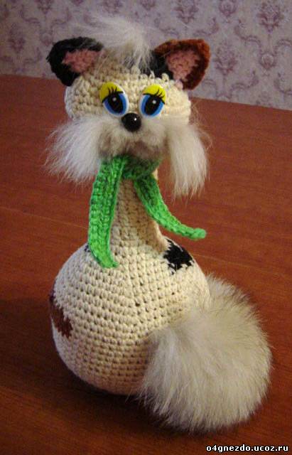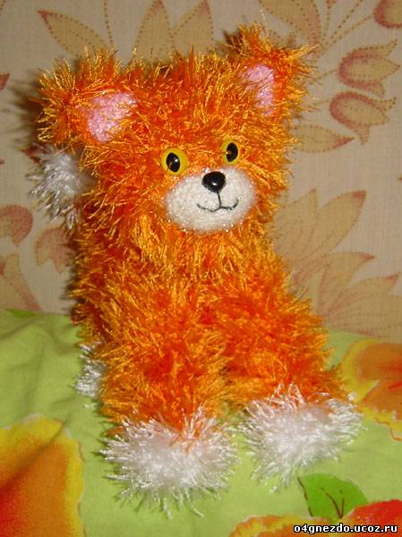 goeland Опубликовано 20 сентября, 2010 Поделиться #42 Опубликовано 20 сентября, 2010 с таким котиком можно никогда не расставаться http://club.season.ru/uploads/post-15773-1281971352_thumb.jpg http://club.season.ru/uploads/post-15773-1281971367_thumb.jpgдетский шарф кот /Вам потребуется: 300гр серой и 100 гр белой пряжи, спицы № 3,5 и пуговицы для глаз.описание работы:Наберите на спицы 80 п. и вяжите 100 см полосами; 4 ряда серой и 2 ряда белой пряжей. Набрав 80 п. отдельно свяжите переднюю часть серой пряжей длиной 20 см. Передние, задние лапы и хвост вяжите отдельно. Для головы свяжите прямоугольник, довяжите нос и веки, оформите глаза. Сшейте все детали и наполните голову и лапы синтепоном.взято отсюда Я не хочу создавать что-то для того, чтобы мне платили. Я хочу, чтобы мне платили за то, что я создаю. Leonard Cohen. Мой сайт мой инстаграм Ссылка на сообщение Поделиться на другие сайты Поделиться
