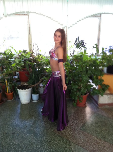 Tanya Levitz Опубликовано 1 февраля, 2014 Поделиться #65 Опубликовано 1 февраля, 2014 Увы, фото скинула мама девочки, других фоток нет. Пояс спереди углом, сзади прямой, из двух частей. Лиф состоит из двух треугольников, соединенных под грудью планкой со вставленной в нее резинкой. Лямки укреплены корсажной лентой. И напрасно. Лучше было бы внутрь лямок тоже вставить резинку. А так заморочилась подгонять, чтоб лямки не падали в танце и не подтягивали вверх планку под грудью. Другие костюмы этой серии шила на основе топиков с резинкой под грудью. Село все без подгона. Расшито по вырезу горловины и по лямкам до конца жгутом из розовых пайеток, пайеток Сваровски и золотого бисера. Также вдоль бокового разреза штанов. Пояс и планка под грудью украшены готовой тесьмой, которая в свою очередь обшита золотым бисером. Крупные розовые элементы - это тоже готовые цветы, вырезанные из тесьмы. Навеска состоит из фиолетовых готовых бус и золотых китец, набранных из бисера для разбавления, на концах золотые бусины. Расшивка разбавлена синими камнями, обшитыми золотым бисером. Материал закупала тренер, поэтому все такое разное. Пришлось пофантазировать, чтоб уравновесить рисунок.Что касается голубых костюмов, то там под юбки просто были куплены телесные трусики. А вот идея объединить трусики с юбками мне очень понравилась. Спасибо. В следующий раз предложу мамам такой вариант. "Мода выходит из моды. Стиль - никогда." Коко Шанель. Ссылка на сообщение Поделиться на другие сайты Поделиться