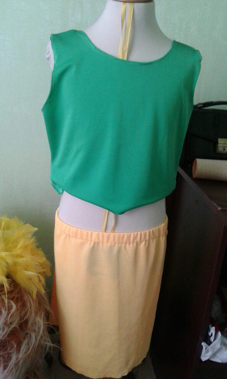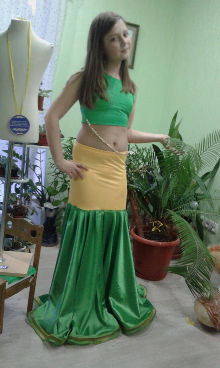 Олеся@ Опубликовано 16 июня, 2017 Поделиться #172 Опубликовано 16 июня, 2017 Сначала хочу сказать большое спасибо девочкам за советы, пошива. Отдельное спасибо El@ana и особенно Лорри. Которая пошагово рассказали как и что и руководила процессом. И вот мой первый костюм готов. Хочу максимум подробно написать пошив, для таких как и я первый раз которые будут шить. Померяла объём бедр и желаемую динну юбки. Ткань отрезала по длинне нужного размера сразу, что-бы легче было работать. Потом объем бедер поделили на два, ткань сложила в двое и просто отрезала, возможно это не совсем правильно. Но как сделать выточки я не знала. Сшила. Далее просто подвернула под резинку и продела её. (фото 1). Далее юбку отложила, так как побоялась пока продолжать. И взялась за топ. Взяла просто майку малой, и перенесла на бумагу. А с бумаги на ткань. (фото 2). Сшила две детали вместе, далее мне захотелось, что-то изменить в топе и вырезала просто треугольник сзади. Которому пришила поворозки с бифлекса. (фото 3 и 4). Вот топ был готов. Теперь взялась продолжать юбку. По размерам на бумаге сделала выкройку юбки полу сонце. С бумаги перенесла на ткань уже и вырезала. Далее её пришила к бифлексу.(фото5) Потом украшения из фетра. Вот что вышло. (фото 6 и 7) Ссылка на сообщение Поделиться на другие сайты Поделиться