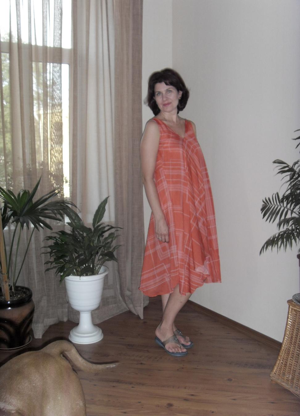 Продолжаю, это платье как работа над ошибками первого. Учла все огрехи, действовала более разумно. Низ сделала ровный (но кто догадается об этом?)