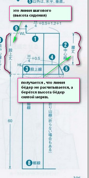 Jizelia Опубликовано 12 марта, 2013 Поделиться #253 Опубликовано 12 марта, 2013 (изменено) La_femme, давайте переберемся в эту тему для обсуждения модели брюк. Я понимаю, что у японцев такие же измерения как и в наших построениях, т.е линия бёдер и линия шагового (линия высоты сидения). По линии шагового как и у нас вся ширина делится пополам и таким образом находим линию сгиба брюк. А вот на каком уровне у них здесь линия бёдер находится я не могу понять. Есть только линия шагового (это линия высоты сидения).Вот из этого построения видно: Изменено 12 марта, 2013 пользователем Jizelia Ссылка на сообщение Поделиться на другие сайты Поделиться