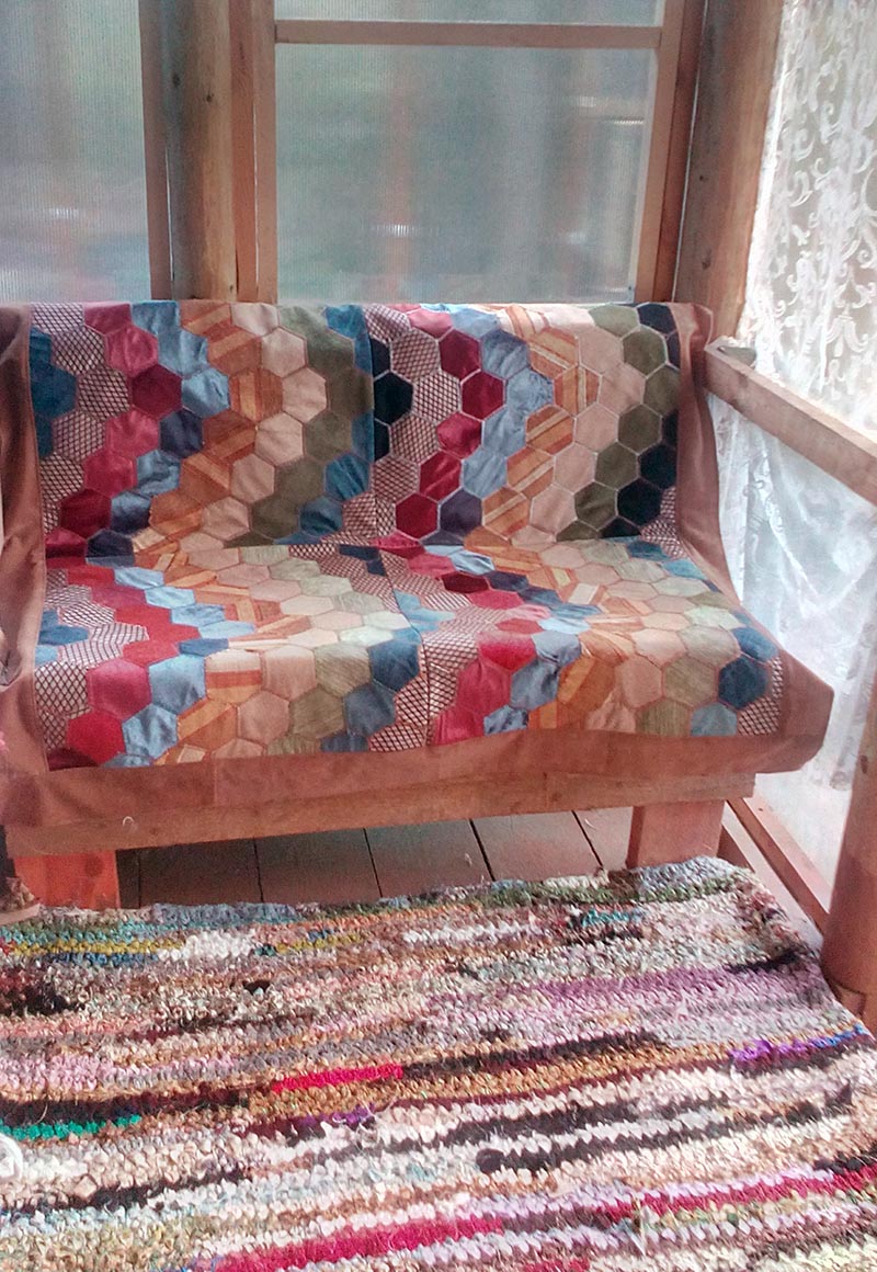 goeland Опубликовано 21 сентября, 2018 Автор Поделиться #597 Опубликовано 21 сентября, 2018 Добрый день. Хочу показать свой маленький лоскутный уголок:место отдыха и вечерне-ночных посиделок. Место, о котором будем вспоминать в длинные зимние вечера, а весной с большим-пребольшим удовольствием откроем новый дачный сезон. Лоскутная скатерть и кожаная салфетка. Обшивание деревянных скамеек, чтобы было мягко. Нижняя часть сплетена на раме, а верхняя сшита из мебельных тканей, разбита на секции и в каждую маленькую часть вложен поролон ( хоть немного уменьшила запасы). Мягкий чехол на стул. Тоже мебельные ткани. Диванчик. Покрывало из мебельных тканей. Небольшой мой уголок для плетения ( в коробках ткани. На зиму занесу домой, так же как и мой плетеный незаконченный проект). Я не хочу создавать что-то для того, чтобы мне платили. Я хочу, чтобы мне платили за то, что я создаю. Leonard Cohen. Мой сайт мой инстаграм Ссылка на сообщение Поделиться на другие сайты Поделиться