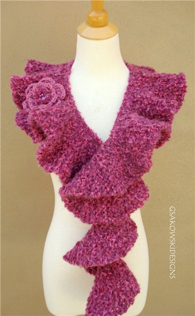 Inn@w Опубликовано 27 августа, 2010 Поделиться #76 Опубликовано 27 августа, 2010 (изменено) отчитаюсь, мой вариант узкого шарфика с цветком. Вместо ленточки - шнурок. Выглядит не так нежно, как у Holya, но вязалось в пару к повязке на голову, а она из пряжи цветка. п.с.: забыла сказать. Цветок на маленькой брошечной булавке. его можно отстегивать, или вместе с шарфиком крепить. Цветок для шарфика тяжеловат. /*от Ksul'ka: добавила осветленную версию шарфика, чтобы узкую часть было лучше видно на тёмном фоне*/ Изменено 31 августа, 2010 пользователем Ksul'ka о книжках и путешествияхо рукоделии Ссылка на сообщение Поделиться на другие сайты Поделиться