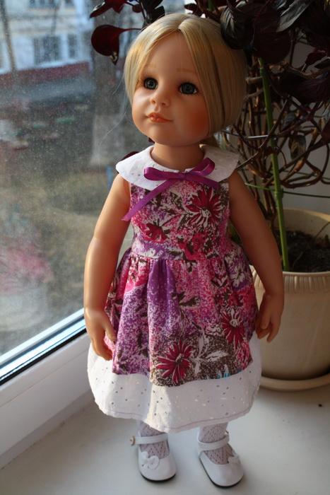 Та самая немецкая куклёнка фирмы Gotz, которую я хотела купить, продав несколько рукодельных вещичек для кукол. В итоге ничего не продала, а просто выбрала девочку, максимально похожую на мою дочурку. Хочется потом реализовать идею American Girl и нашить-навязать им одинаковых нарядов (для родных и знакомых, подсмеивающихся над моим увлечением куклами, аргумент звучит так: дочь будет учиться составлять рациональный стильный гардероб, сочтетать вещи по стилям, цветам и фактурам и т.д. и т.п. И, в общем-то, это не так уж далеко от правды.)