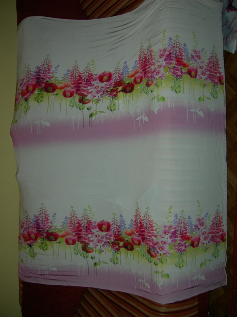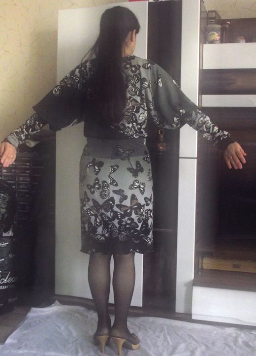 На 2-ой день свальбы одеть и в отпуске походить. Два купона, струящийся вискозный трикотаж. весьма дорогой. Купон поперечный, примерно 70 см.,ширина 140. Дочь ростом 174 и р-р.46-48. Длинное в пол не оденет.