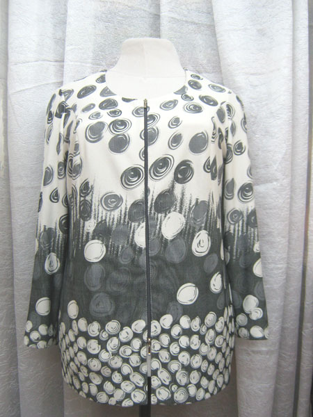Жакет из трикотажа.Кроила поперек,к сожалению,после стирки в ширину сел,в длину вытянулся.Сушила на плечиках,а надо бы на столе...
