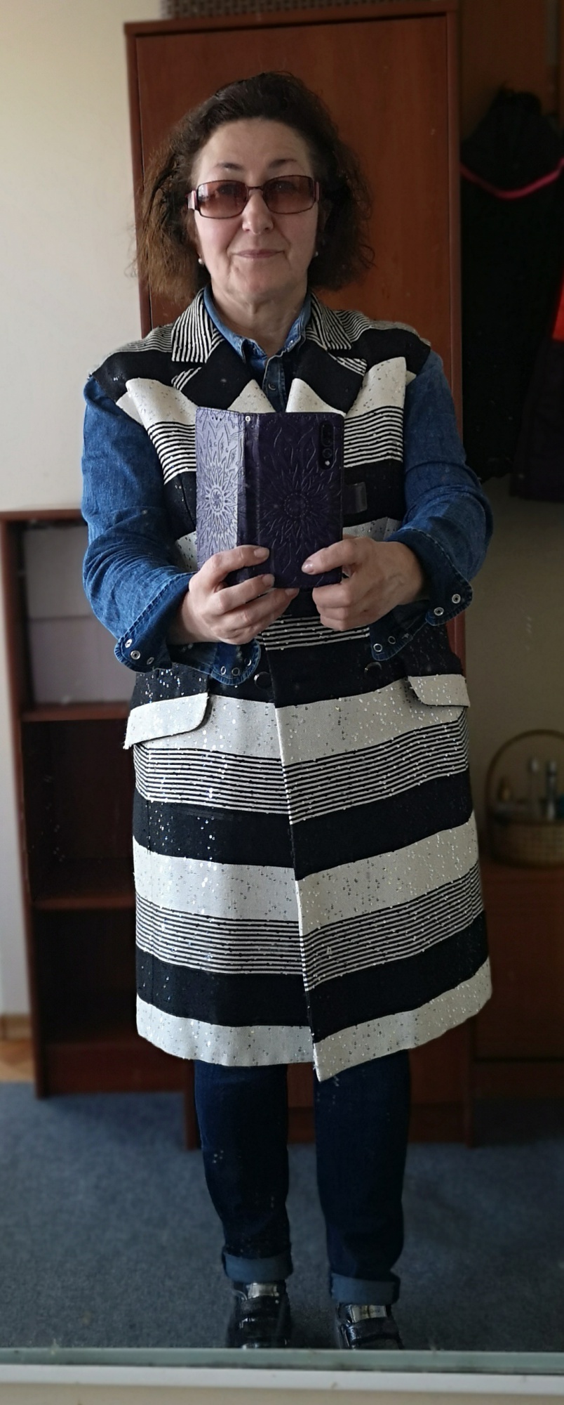 Yadviga Опубликовано 22 апреля, 2019 Поделиться #3923 Опубликовано 22 апреля, 2019 (изменено) Укорачивать не хочется. В самом крайнем случае.A попробуйте подколоть нижнюю белую полосу, чтоб она не создавала сильный контраст с брюками, тогда может оно начнет легче компоноваться со всеми низами.Под эту жилетку нужны упрощенные блузы-рубашки без воротников и даже может и без манжет для пуризму. Но про манжеты нужно примерку делать, не всем нормально идут рубашки без манжет.Если бы у меня была такая жилетка, я бы ее со светло-голубой блузой и голубыми джинсами. Но у меня действует правило: не знаешь что надеть - надевай голубое. Может и у Вас есть универсальный цвет, подходящий ко всему? Изменено 22 апреля, 2019 пользователем Yadviga Ссылка на сообщение Поделиться на другие сайты Поделиться