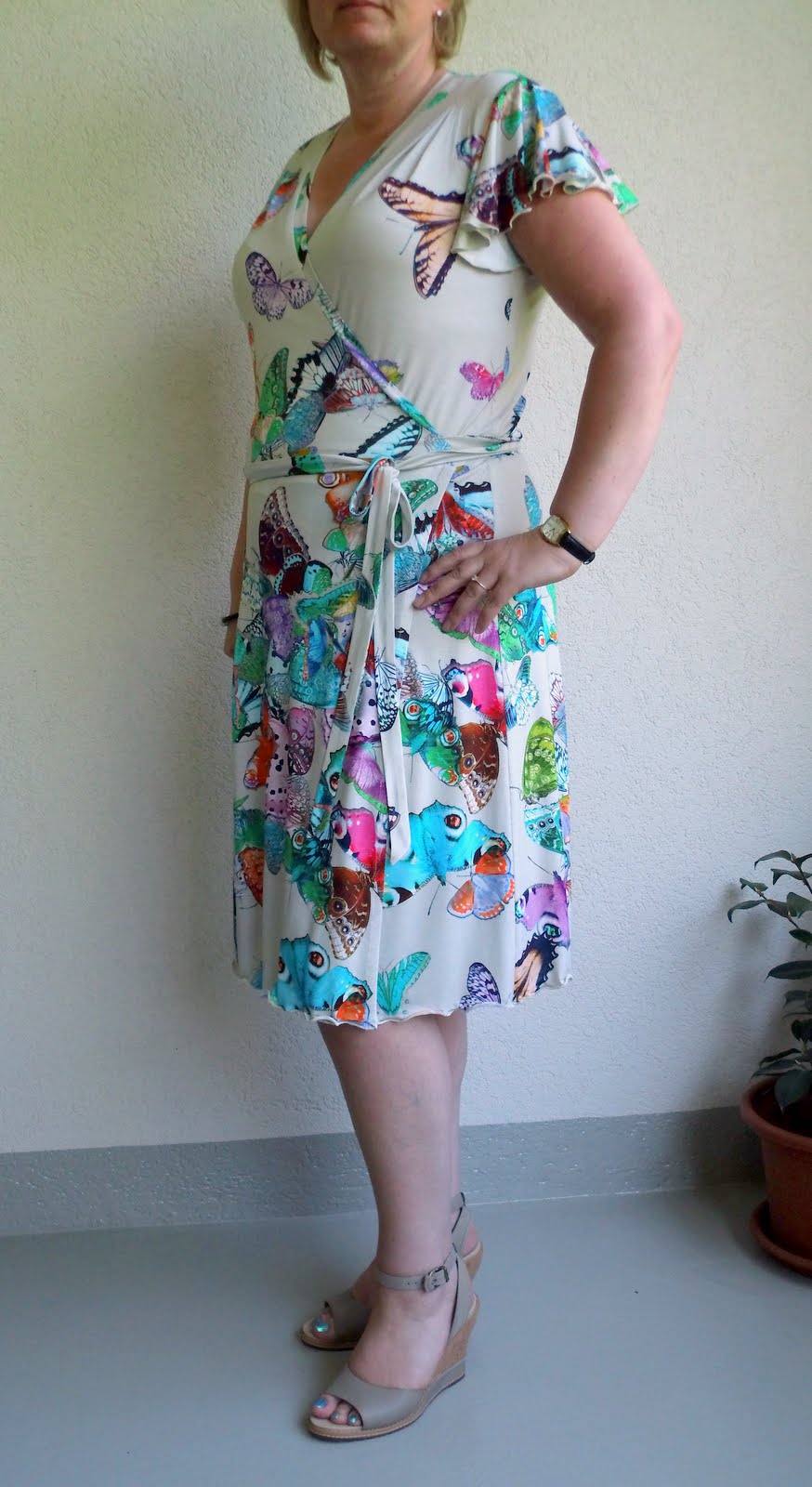 Yadviga Опубликовано 29 июля, 2012 Поделиться #1006 Опубликовано 29 июля, 2012 ну я в общем то имела ввиду что вам надо что -то вроде этого же сделать. или то что предложили impel и Кусака МадагаскарскаяНе получается. Подруге топ с бабочками и драпировками я дошила, ей наверно сойдет, она длинная как анаконда и яркая, ей даже этот принт - умеренно-средненький. А я метр с кепкой с коротким торсом: не успели начаться плечи, как уже закончилась талия. Я повертела ее топ на себе - для меня это получается перебор: я мелкая, а тут сразу и крупный броский рисунок, и броская драпировка, - сантиметрами я не вышла для этого. может тогда кусок перевернуть, и вверх на лёгкие качели пустить рисунок где бабочки не очень в кучку летают, а то место где кучно -уже в расправленном виде вниз. Что скажете?Попробовала - не помещаюсь. Центральное скопление бабочек накрывает меня от плеч до подвздошных костей. Если подвинуть купон вниз, чтоб появилась сверху белый фрагмент, то самый тяжелый аккорд бабочек придется на живот. Ссылка на сообщение Поделиться на другие сайты Поделиться
