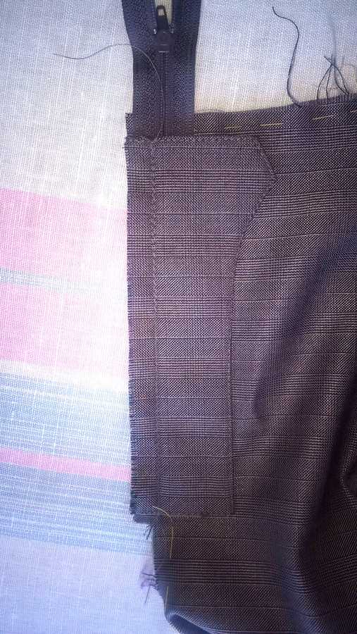 ies Опубликовано 13 марта, 2018 Автор Поделиться #514 Опубликовано 13 марта, 2018 3) Выворачиваю, утюжу, даю отделочную строчку на 1 мм от края: 4) Заутюживаю гульфик по сгибу до места будущей закрепки: 5) Прямой строчкой со стороны гульфика закрепляю подкладку, обрабатываю срез гульфика (в моем случае это оверлок, но можно это сделать косой бейкой): 6) Уравниваю нижние концы молнии с откоском, приметываю к нему молнию и притачиваю откосок с молнией к левой передней половинке брюк. Молния «отодвигается» внутрь на 0,7-1 см от края гульфика и не будет потом видна: 7) Обрабатываю срез косой бейкой так, чтобы нижний конец получился на 1,5-2 см длиннее шва. Делаю ВТО: 8) Выполняю шов сидения, под шов оверлока прихватываю конец косой бейки.Закрываю молнию, отгибаю и фиксирую откосок на левую половинку брюк, приметываю и притачиваю правую часть застежки к гульфику: 9) Укорачиваю молнию (я не переставляю ограничители, а фиксирую концы спиралей стежками вручную): 10) Соединяю детали пояса, делаю ВТО, растачиваю места соединений, обрабатываю нижний край пояса (в моем случае оверлок, можно сделать косой бейкой): ... Все в наших руках, поэтому их нельзя опускать (Коко Шанель)Мой Pinterest Ссылка на сообщение Поделиться на другие сайты Поделиться