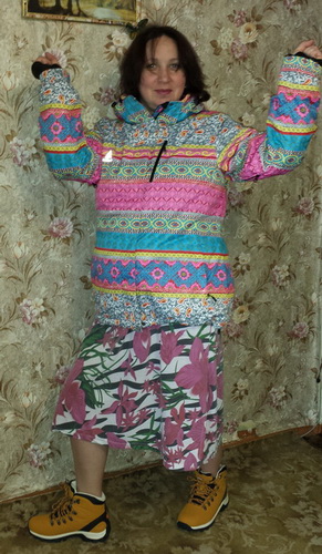 К слову сказать - только чур-не смеяться с общего вида - вот попалась такая куртка- яркая, с узорами, чем то навеяло от неё олимпиадой и чем то русским- узоры, яркие цвета, будто вязанный рисунок - я просто растаяла и я купила её (с прицелом , что скоро еще на лыжах буду кататься на курорте), а к ней ботинки новые (давно хотела) - меряла красные, купила желтые- "ах, эти желтые ботинки!" Осталось купить (если смогу дойти, так как работы до 8 марта просто завались и не продохнуть) голубые штанишки утепленные и буду вся как светофор на улице! Ну, не дают мне покоя яркие цвета! И от чего это?)))