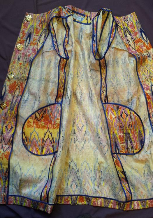 и принесла вам еще одну пошивалку - летнее пальто из шикарной ткани неизвестного происхождения - вроде бы дочь привезла маме в подарок с Южной Америки, с Аргентины