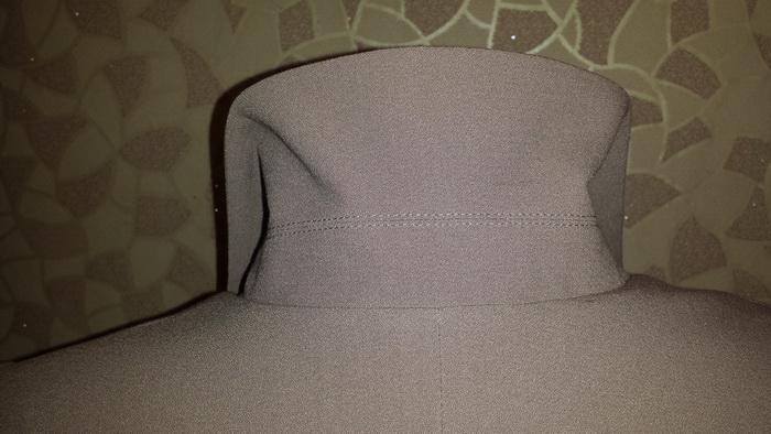 А, не хочет стоять нормально? На примерке нужна помощь. Нужно все заколоть так вокруг шеи, чтобы воротник нормально лег, прилегал или отставал красиво, и уже внести изменения в выкройку и обтачку(подборт) и продублировать их с изменениями. Вытачки на обтачке не делают. Её кроят с плечевыми швами, не цельную. Швы плечевые на обтачке тоже стоит немного оттянуть утюгом.