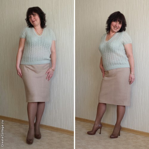 Анжела-юбка провокаторша, ведь нужно же ей было сесть ну ровно на столько, чтобы ты себя в зеркале увидеили и поняла-или сейчас или уже никогда. Анжела, длина твоя и никаких оговорок на возраст-резать к чертовой матери, не дожидаясь "перитонита". А длина благородная,и пропорции хорошие и легкость в фигурке, не сомневайся.