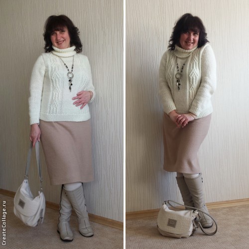 Или скорее сказать - про образ зимней белой снежной магаданской утепленной королевы, потому как к юбке добавились новый свитер, и те вязанные вещи, что у меня есть, отлично подошли к ней (так было задумано).