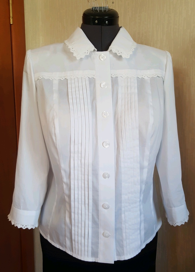 И быстренько в продолжении темы блузка к костюму и просто так, из нежнейшего батиста со складочками и с узеньким шитьем.