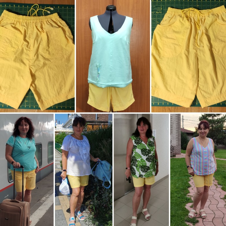 Шорты шила узкие, короче, чем жёлтые из жатой плащевки, которые я покорила ещё в прошлом году перед тем отпуском , а дошла только сейчас