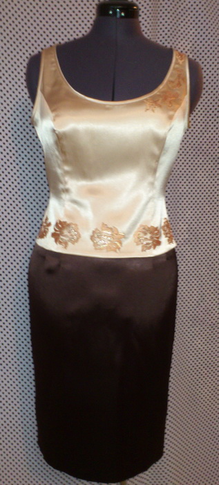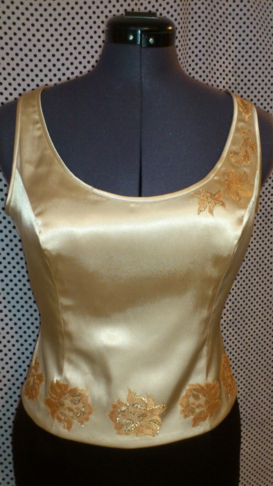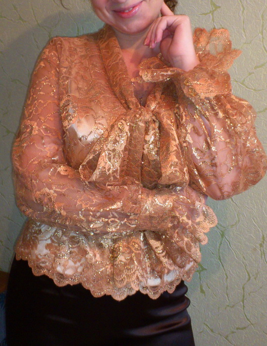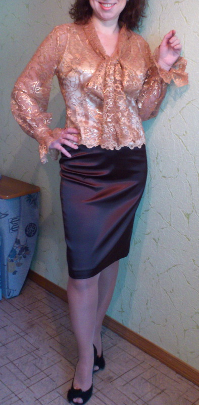 А теперь покажу недавно отшитый комплект моей хорошей приятельнице, состоящий из атласной юбки , атласного топа и кружевной блузки неземного золотисто-рыжего цвета. Только сегодня сфотографировали, устроив небольшой скромный фото-сэт.