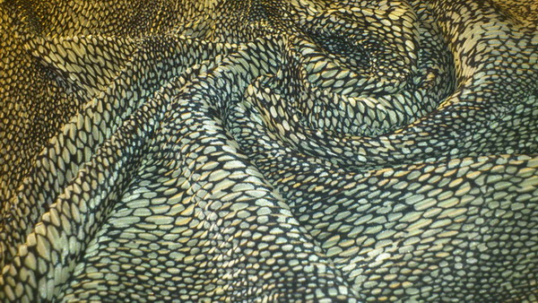 простое платье из гофрированного трикотажа змеиной расцветки.