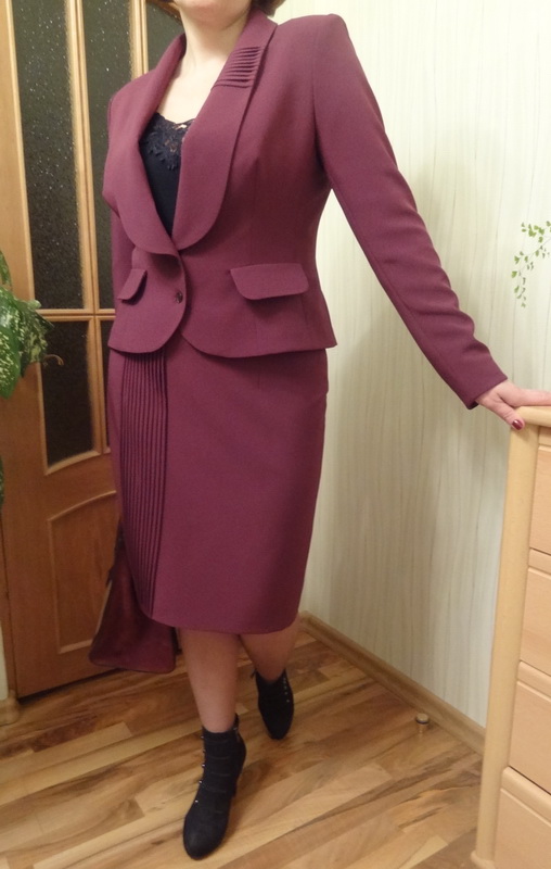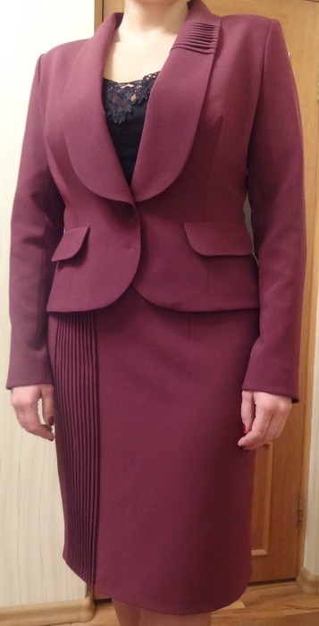 Принесла вашему вниманию еще одну хвасту- костюм из стрейтчевого свекольно-бардового габардина со складками.