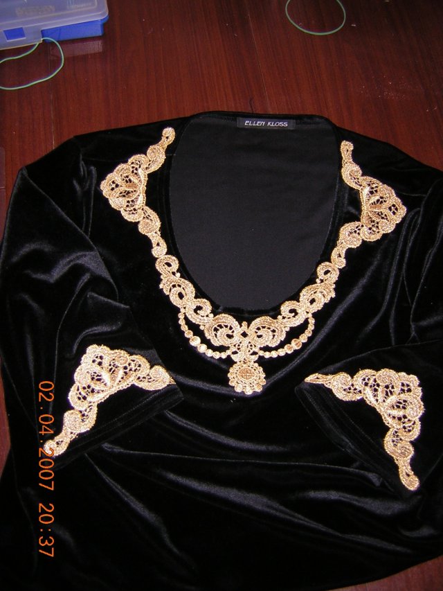 Калита Опубликовано 5 февраля, 2007 Автор Поделиться #21 Опубликовано 5 февраля, 2007 Золотые кружева на готовом джемпере. Украшала джемпер сестре по ее просьбе: Пришивала вышитые кружева зигзагом. А вообще вышивать кружева очень понравилось. Нитки менять не нужно, скорость ставлю небольшую и машина трудится себе, и особого внимания не требует -)) Поглядываю на всякий случай. Вот эти кружева пока вышивала, даже нитка ни разу не порвалась. мой инстаграм Ссылка на сообщение Поделиться на другие сайты Поделиться