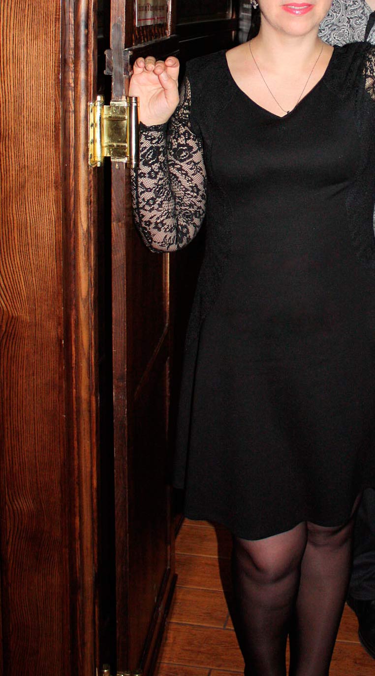 Длина - выше колена. Я вообще думала - удлинить черной тканью, напоминающей трикотаж (или им), а кружевную часть закончить в месте их соединения.