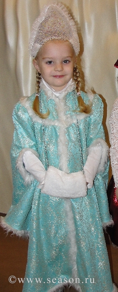 Sky Blue Опубликовано 25 января, 2011 Автор Поделиться #193 Опубликовано 25 января, 2011 Сегодня получила фотографии Снегурочки:) Хотя новогодняя тема уже ушла,всё же покажу:)Костюм состоит из платья на подкладе, муфточки и шапочки, правда её почти не видно:("Опушка" на платье сделана из меха, резала на полоски шириной 3 см., складывала попалам и вставляла как кант. Пока мы откладываем жизнь, она проходит. Ссылка на сообщение Поделиться на другие сайты Поделиться