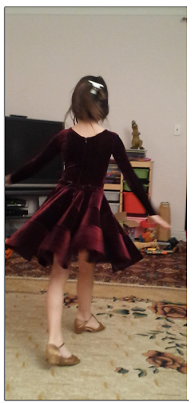Ну и наконец вишневое платье для стандарта. Юбка шифон, времени гофрировать не было, пришлось шить как есть. Нижняя юбка сшита из шелка, но больше так делать не буду - очень мнется, неудобна при шитье и не дает нужного объема.