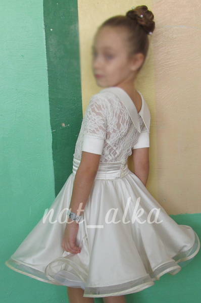 Нет,никаких побочных целей.Все вышло спонтанно-и светлая ткань,и крупный рисунок гипюра,который было жаль резать,и чуть больше обычного декольте.Но как-то все очень хорошо сложилось вместе,как пазл.А когда под платье надели широкую резинку,то юбочка села точно на свое законное место.Получилась маленькая счастливая принцесса!
