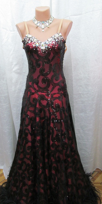 Черная сетка расшита пайетками и продублирована алым бифлексом.