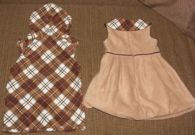 finakova Опубликовано 9 февраля, 2014 Поделиться #327 Опубликовано 9 февраля, 2014 Сшилась сыну безрукавка с капюшоном (Оттобре) из тонкого тянущегося флиса. В качестве компаньона был куплен остаток бежевого флиса, причём этого остатка хватило дочке на сарафан (который сшился быстрее, чем безрукавка). Думала сделать на сарафане аппликацию из клетчатого флиса или кармашки (хоть за помощью к Марие Sandra обращайся). Но в итоге сшит воротничок - вот такой комплект "дочки-сыночки" :) Ссылка на сообщение Поделиться на другие сайты Поделиться