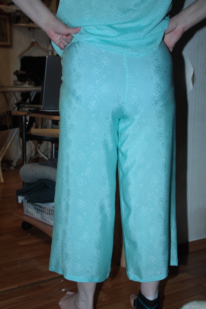 Jioti Опубликовано 20 сентября, 2017 Автор Поделиться #1880 Опубликовано 20 сентября, 2017 А вот и я с забегом:-)Сегодня у меня моя шелковая пижама для ФМ Кин-Дза-Дза или Мама, что я буду делать?как то по случаю был куплен старинный шелк шириной 100 см и длиной 180 смхотела блузку, но так и не дохотела, а пижама родилась сразу, сегодня утром скроила, вечером закончила:-)Штаны и рукава скроены по поперечной, потому что еле впихнула крой в ткань.Знаю, что так не кроят, но это для себя и что главное- чтобы костюмчик сидел:-))Обтачка по горловине и на штанах из другого шелка подходящего цвета.Фото на мне только такое, потому что фотографа днем с огнем не словишь:-)) Кофточка из бурды № 3-2016 мод.103, убрала складку на спинке. Штаны из спец. выпуска бурды для полных весна-лето 2017мод.407, убрала только карманы и боковые швы.Выкройка штанов очень удачная, шила без ВТО, посадка очень понравилась.И если их отВТОшить, то совсем будет класс. И простой мини МК- как я пришиваю обтачку под резинку(вдруг кому пригодится, а я кепку на ФМ получу:-)) штаны готовы Мисс Лу 1 Нужно помыть голову.Изнутри !:-)мой альбом, мой инстаграм, моя страница в ВК Ссылка на сообщение Поделиться на другие сайты Поделиться