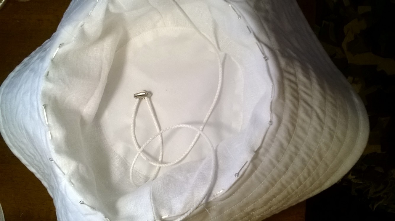 1. Плотный коттон, поля проклеены, внутри лен и батист(что нашлось в закромах по цвету и натуральности). Осознав парусность полей, решила добавить шнурок с фиксатором -планирую носить больше в отпуске.