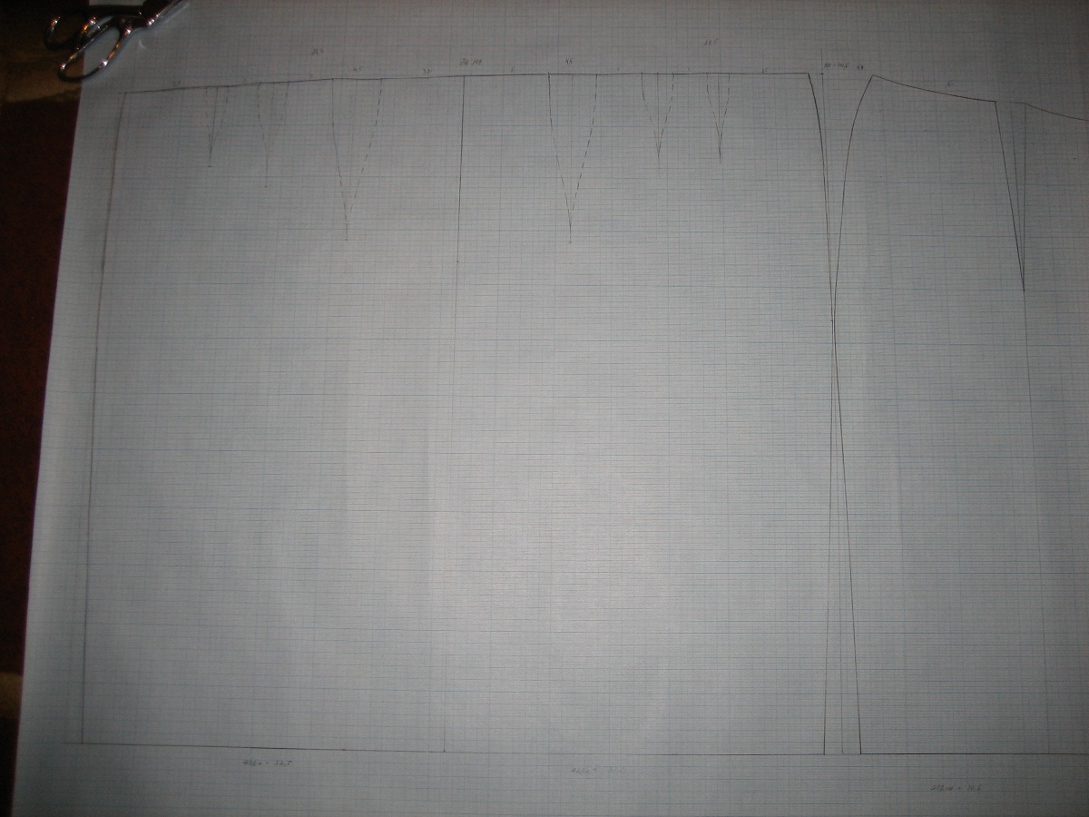 Лиля Опубликовано 18 октября, 2012 Поделиться #586 Опубликовано 18 октября, 2012 (изменено) Мои пересчеты: Сумма выт - 36см, выбрасываю из формулы Пхжив, т.к.=0Рпб=Пхб/(Пхбп+Бхп+Зхп+Зхл+Бхл+Пхбл)*S=3.5/(3.5+5.5+10.5+10.5+7+3.5)*36=3.5/40.5*36=3.11(такое же значение и выт. на бедро слева)Рбл=7/40,5*36=6,22Рбп=5,5/40,5*36=4,89Рз=10,5/40,5*36=9,33 Я правильно поняла и пересчитала, так как делаю это впервые на асим. фигуру? Теперь, надо пепераспределить р-р боковой выточки. Но пока жду вашего ответа на счет правильности перерасчета выточек. Изменено 18 октября, 2012 пользователем Лиля Ссылка на сообщение Поделиться на другие сайты Поделиться