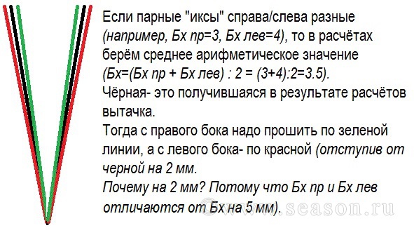 Татьяна Попова(СПб) Опубликовано 18 октября, 2016 Поделиться #1039 Опубликовано 18 октября, 2016 4мм- это совсем небольшая разница.Можно в расчёте использовать среднее арифметическое значение.При пошиве можно на 1мм больше/меньше застрочить вытачку на более/менее выпуклой стороне. Ольга, у Вас разница между парными мерками (Зх справа/слева и Бх справа/слева)- всего 4 мм. Средние значения будут отличаться от реальных- всего на 2 мм.Так что отступить от черных линий надо всего на 1 мм. )Нужно на что-то еще обратить внимание или для начала строю по описанию в книге?Чтобы подложить соломки, можно сначала посмотреть на фигуру.Можно фото в приват, если здесь не хотите. Преподаватель курса "Конструирование и моделирование одежды". Cканирование фигур. Построение выкроек в 3D. Моя страница ВК Ссылка на сообщение Поделиться на другие сайты Поделиться