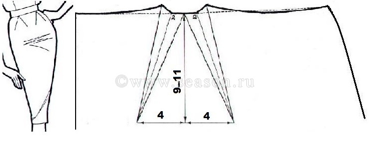 Татьяна Попова(СПб) Опубликовано 27 октября, 2016 Поделиться #1056 Опубликовано 27 октября, 2016 Ольга, спасибо за добрые слова. Вдохновляют. )У меня, если по переду "оглаживать" свою фигуру, то сначала от бока идут "ямки", а потом живот шариком приставлен.Нуууу, это не только у Вас. )) У 90% девушек, имеющих животик, именно так и есть.Вытачки по переду где размещать? ...на какую выпуклость направить вытачки, она ж у меня одна по центру.))) Ну да. Логично: вытачки размещать не "в ямку", а хотя бы ближе к линии середине переда (СП).Но так не принято. Принято- ближе к боку.Если классическая прямая юбка без конструктивных/декоративных линий,то придётся выкручиваться. Есть несколько способов. Покажу примеры из своих "шпаргалок" (мне ведь тоже приходится как-то решать подобные проблемы:такая "особенность" у каждой второй... практически первой на занятиях). Выбирайте. Мне кажется, что эти примеры- красивый выход из положения. )И если "куриная лапка" (3-й рисунок) у меня под сомнением, то первые 2- имеют место быть. )Как в этих случаях располагаем растворы вытачки (Рп)?БОльшую часть от Рп- в ту вытачку, которая ближе к СП, и чисто символическую величину от Рп - во вторую. Второй вариант. Если не хотим ничего такого "эдакого",то вытачку Рп располагаем- таки в "общепринятом" месте (ближе к боковому срезу).Чтобы она не торчала "клювом" в ямку-пустоту,разбиваем Рп на 2 части и располагаем на расстоянии 3..4 см друг от друга. И- понятно: каждая из этих "зауженных" частейгораздо мягче ляжет, нежели весь раствор. И сутюжить узкую вытачку намного реальнее. Третий вариант. Если раствор Рп - небольшая величина, а ткань пластичная, то можно просто припосадить линию талии в районе выпуклости. Кажется, у меня больше нет вариантов. ) Марина и Ольга, я помню о Вас. ) Но надо выделить кусок времени (и свежей головы),чтобы проследить Ваш путь от начала до конца. Я постараюсь. ) Преподаватель курса "Конструирование и моделирование одежды". Cканирование фигур. Построение выкроек в 3D. Моя страница ВК Ссылка на сообщение Поделиться на другие сайты Поделиться