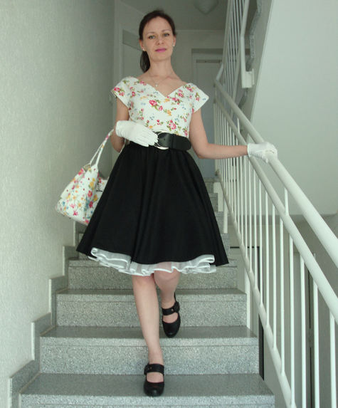 La_femme Опубликовано 2 октября, 2010 Поделиться #2578 Опубликовано 2 октября, 2010 Долго думала, решила выложить другие работы.может порадует чей-то глаз.это судя по силуэту не нью лук.сшила ето платье я год назад,и даже успела поносить на работу.интересное произошло одним воскресеньем на прогулке в общественном парке при замке.Меня буквально остановили две бабульки.одна сказала:"Извините пожалуйста, а у Вас что под платьем? Петтикоат? мы вот спорим с подругой".я приподняла верх юбки.Бабульки как увидели, расцвели в улыбках:"вы знаете, я когда была молодая, так любила такое вот носить".у меня потом весь день было такое хорошее настроение... Юбка обычное солнце, сделала из итальянского жакарда. поняла, что к моде 50-х у меня нет совершенно никаких верхних частей. сделала на основе Платья Бурда11/2007_125. в трикотаж из-за расцветки просто влюбилась,хотя он довольно плотный и имеет эластан...что конечно не очень для этой модели.всё хочу купить себе шиффоновый черный Петтикот с кружевным окончанием,но всё руки не доходят. Я знаю, что ничего не знаю... моя темка на сезоне Инстаграм Ссылка на сообщение Поделиться на другие сайты Поделиться