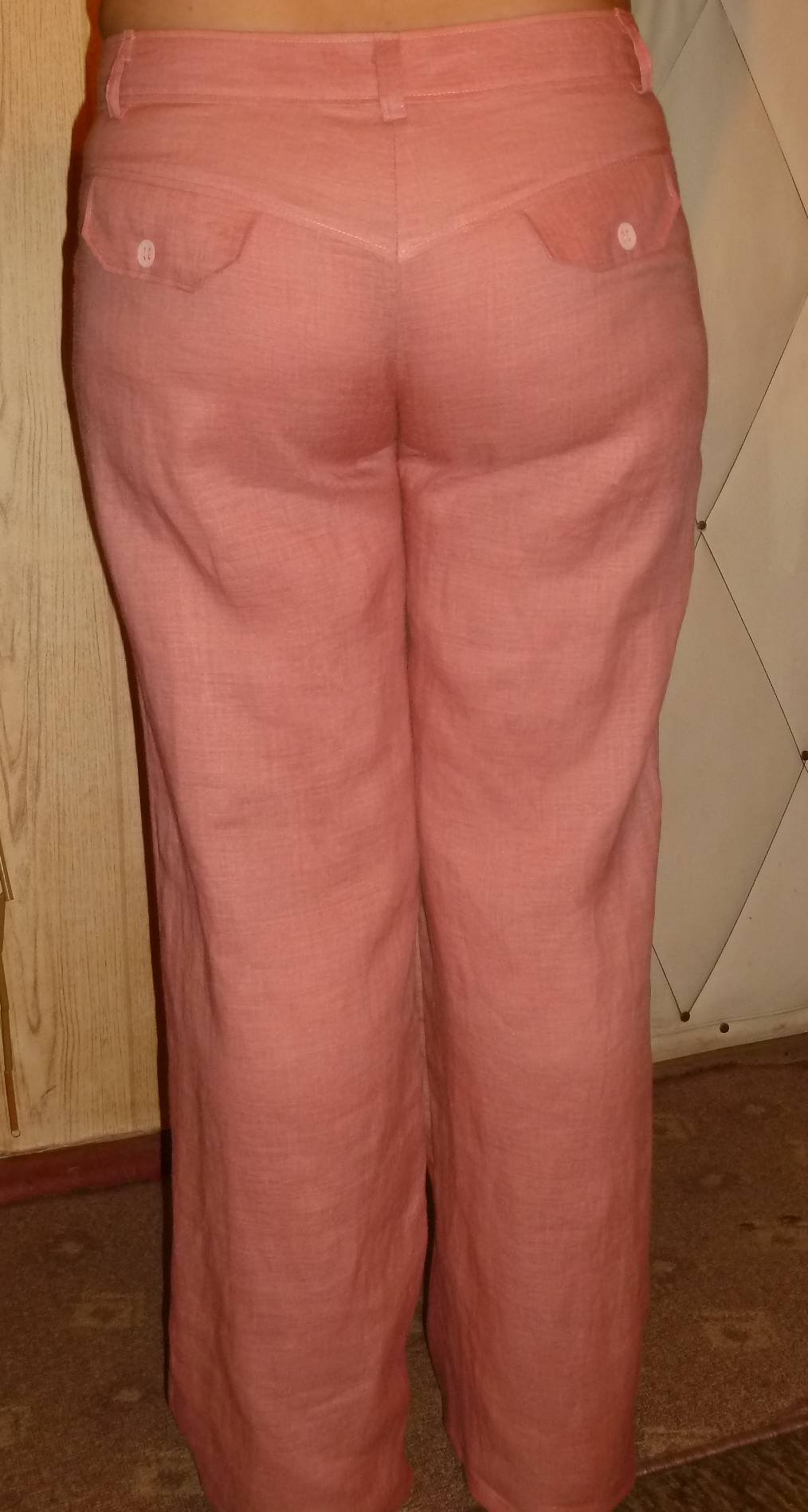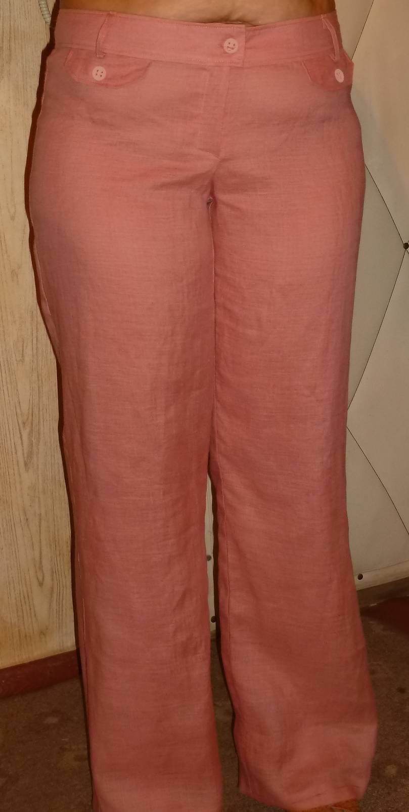И так льняной костюм,выгладила но пока одевала на манекен весь вымялся,свободный под пояс жакетик без подкладки,с накладными карманами,3/4 длины рукав,на них паты по низу.Брюки прямые,сзади на кокетке,под кокеткой и впереди под поясом клапаны.