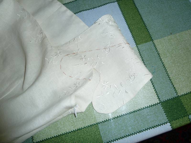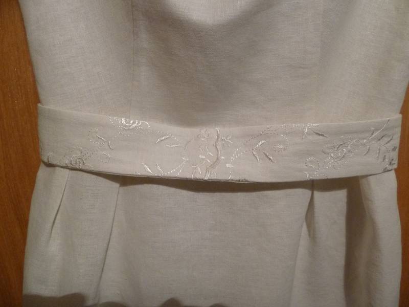 Натуральный лен с купонной вышивкой...платье полуприлегающее,не любит она в облипку.Цельнокроенные клапаны на плечах,позаимствованы из книги "100 фасонов женского платья"м.83.
