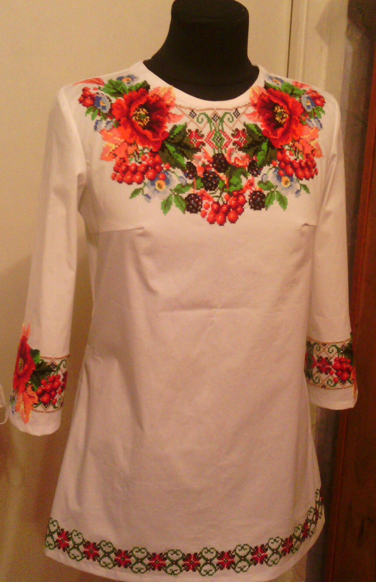 Как видите,я ее не назвала традиционно вышиванкой,вышиванка это сорочка имеющая народный крой,а это вышитая туника,которую можно носить с джинсами,вот больше всего я вижу ее так. Так что вышивайте.