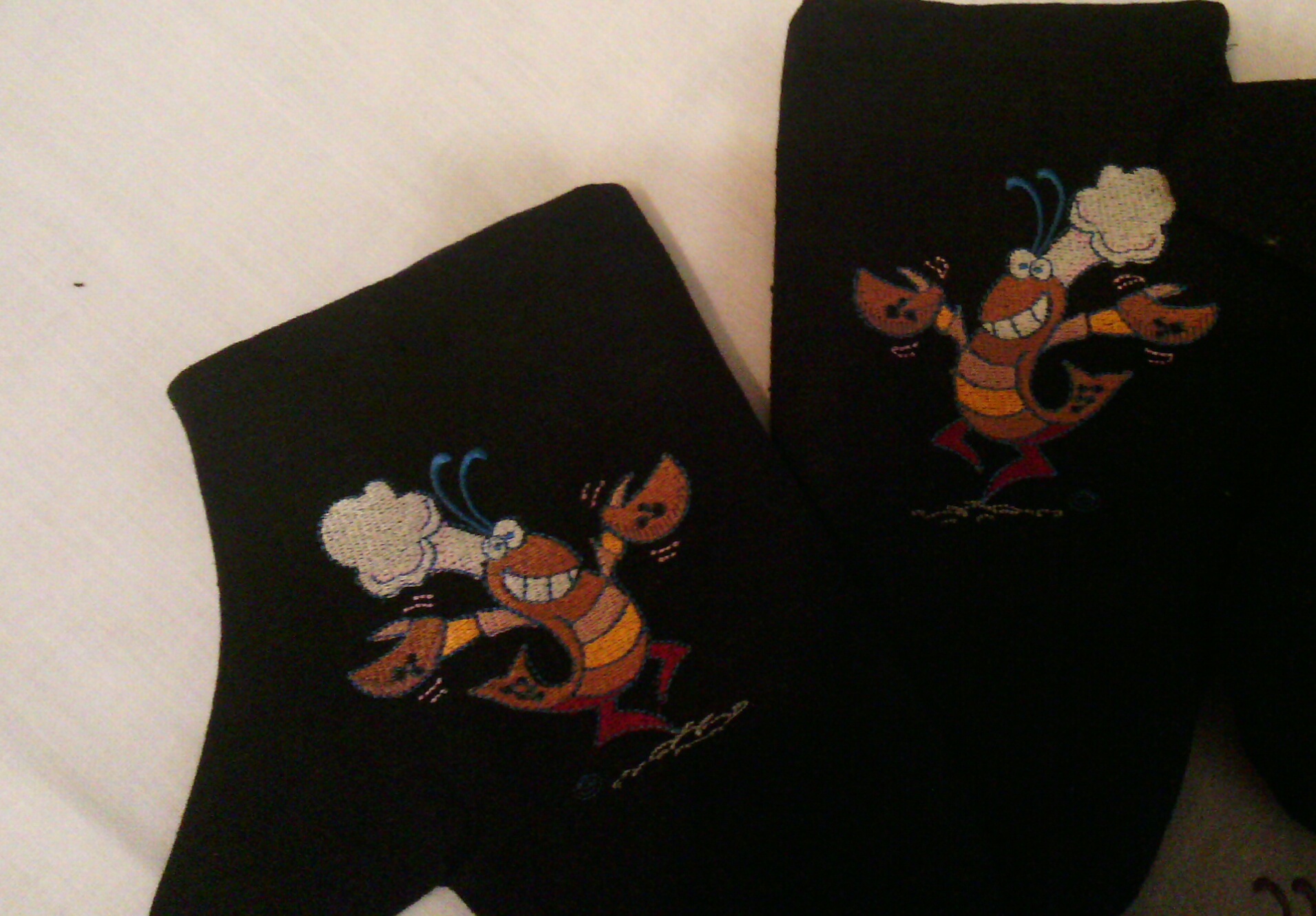Очень заразительное дело это оказалось для меня...по 45 мин.вышивка на одной рукавичке и минут 20 сшить и готово,супер.Еще будут и с другими дизайнами,клевые они эти лобстеры,рыбки,крабы( будуть) прикольные.