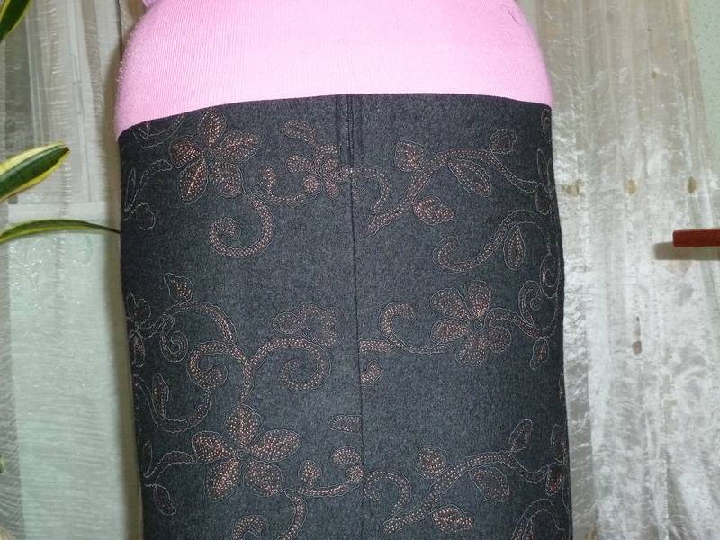 Люблю я юбки шить:)эта юбочка без пояса,на подкладке,молния не потайная обычная,ткань шерсть расшитая сутажом и строчкой выстегана по рисунку.