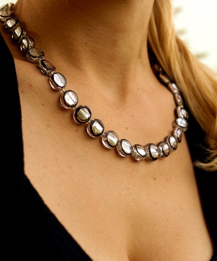 BriNa Опубликовано 4 октября, 2010 Автор Поделиться #15 Опубликовано 4 октября, 2010 Спасибо, девушки, за ценные дополнения и иллюстрации! Думала как "объять необъятное" и построить тему дальше. Решила, что рассказывать про отдельные виды бижу буду последовательно, в качестве объединяющего фактора иногда будет выступать материал из которого изготовлено украшение, иногда сам тип бижутерии. Разделение по материалу мне кажется разумным, потому что он довольно сильно влияет на "тональность", которую придаёт украшение всему ансамблю. В качестве примеров я намеренно стараюсь использовать те, что могут быть сделаны своими руками. В этом посте ( и, возможно, нескольких последующих, зависит от картинок ) речь пойдёт о бижутерии со стеклом.В качестве материала для украшений стекло используется очень давно, самым древним из найденных на сегодня изделий из рукотворного стекла считается светло-зеленая бусинка размером 9х5,5 мм, обнаруженная в окрестностях города Фивы - датируется 35 в. до н.э. Желающие могут подробнее ознакомиться с историей стекла здесь. Несколько последних веков стеклу доставалась неприглядная роль имитации настоящих драгоценностей, дамы "со вкусом" морщили прелестные носики, дамы "с амбициями" восклицали "или подлинное, или ничего!", дамы "без предубеждений" переливались, как ёлки :) Борьба китча и снобизма :) А маленькие девочки просто любили это рождество в миниатюре :) Современная бижутерия из стекла не стесняется быть бижутерией, не имитирует натуральные камни и умеет выглядеть вполне повседневным образом. Очень важным фактором мне кажется широчайший цветовой диапазон. У стеклянных бусин влажный мягкий блеск, как у глаз.Что особенно приятно, каждая бусинка делается вручную, поэтому каждая - индивидуальность. Мастеров, занимающихся lampwork, становится всё больше, работы всё интереснее. Можно заказать бусины в нужных тонах, формах, дизайне.Серьги из стекла могут выглядеть деликатно.А могут стать ярким акцентом, привлекающим внимание к лицу, всё зависит от формы и размера.Продолжение в следующем посте. _ Sine ira et studia _ Ссылка на сообщение Поделиться на другие сайты Поделиться