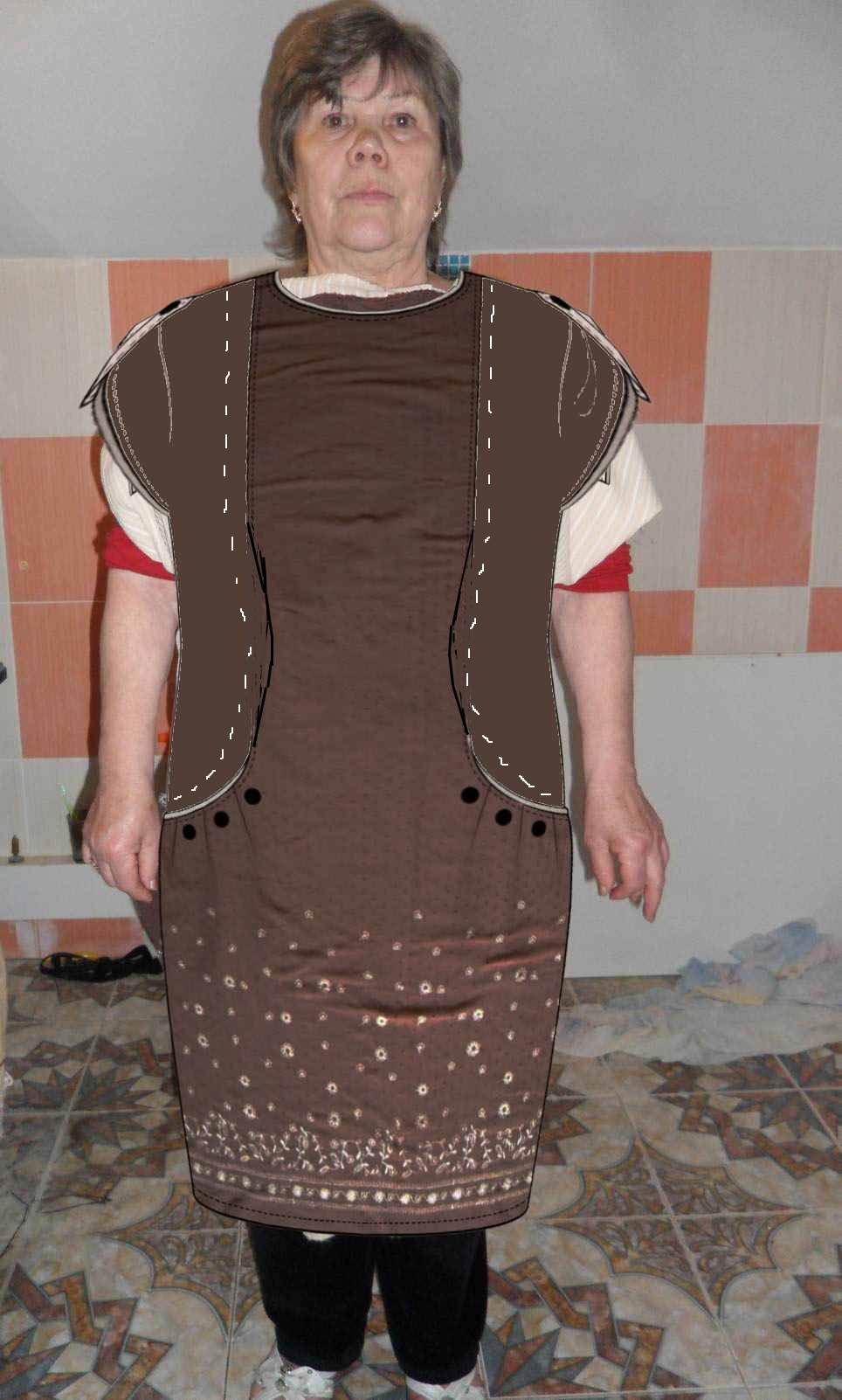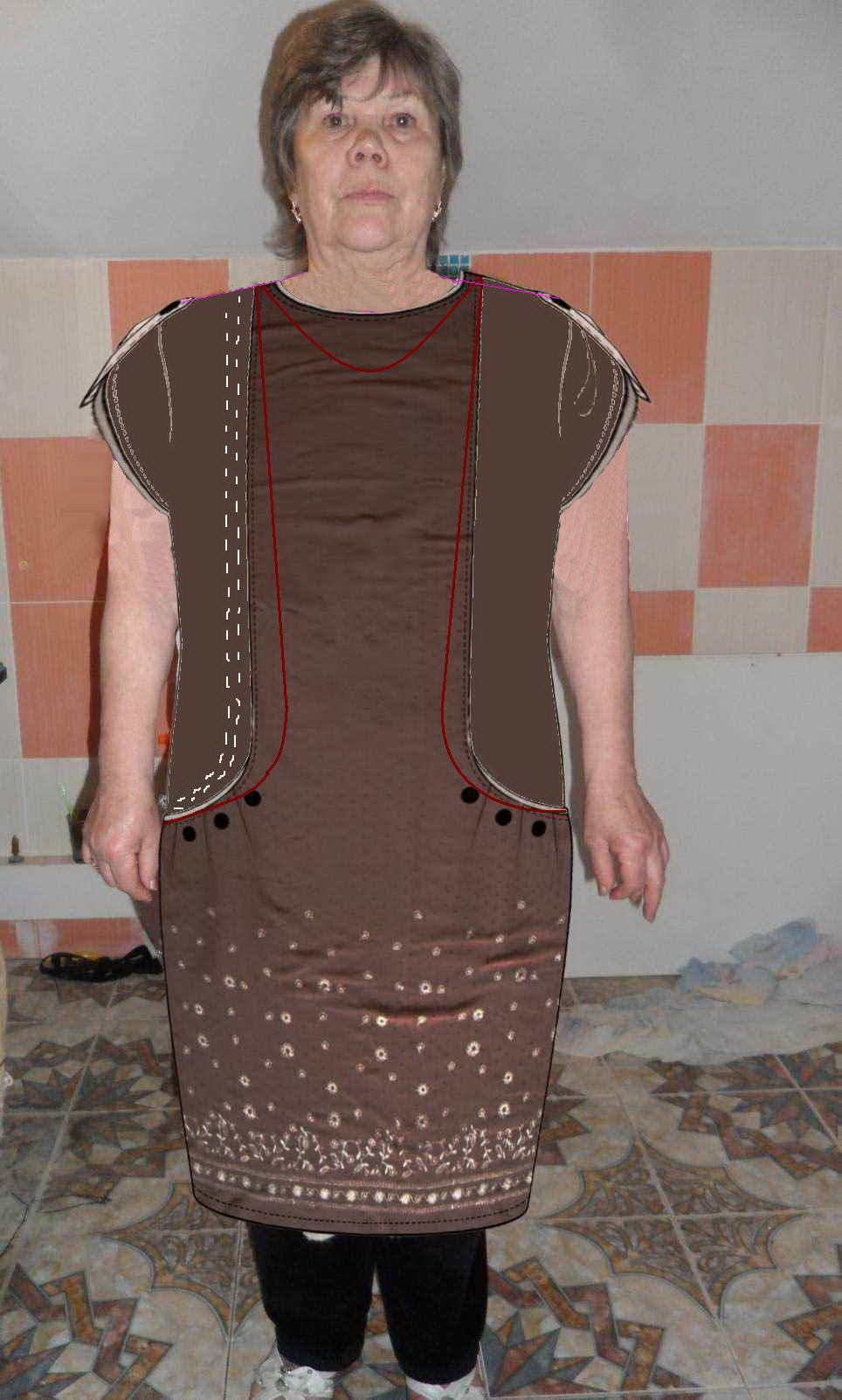 salserita Опубликовано 8 мая, 2012 Автор Поделиться #508 Опубликовано 8 мая, 2012 У вашей мамы тяжелый верх - его действительно надо визуально удлинять за счет удлинения выреза горловины или укорачивания рукавов (ИМХО)так вот скажите мне. что здесь можно поправить чтобы смотрелось хорошо?горловину углубим. Рукава здесь и так короткие. а если сделать контрастные ручные стежки не по рельефному шву, а рядом сделать...ну параллельно им на некотором расстоянии... мне тут девочки сказали что рельефы проходящие по наивысшим точкам груди, тоже полнят. Поэтому делаю вывод что вести отделочную по ним не стоит.но хочется развеселить платье)))может примерно так? Ссылка на сообщение Поделиться на другие сайты Поделиться