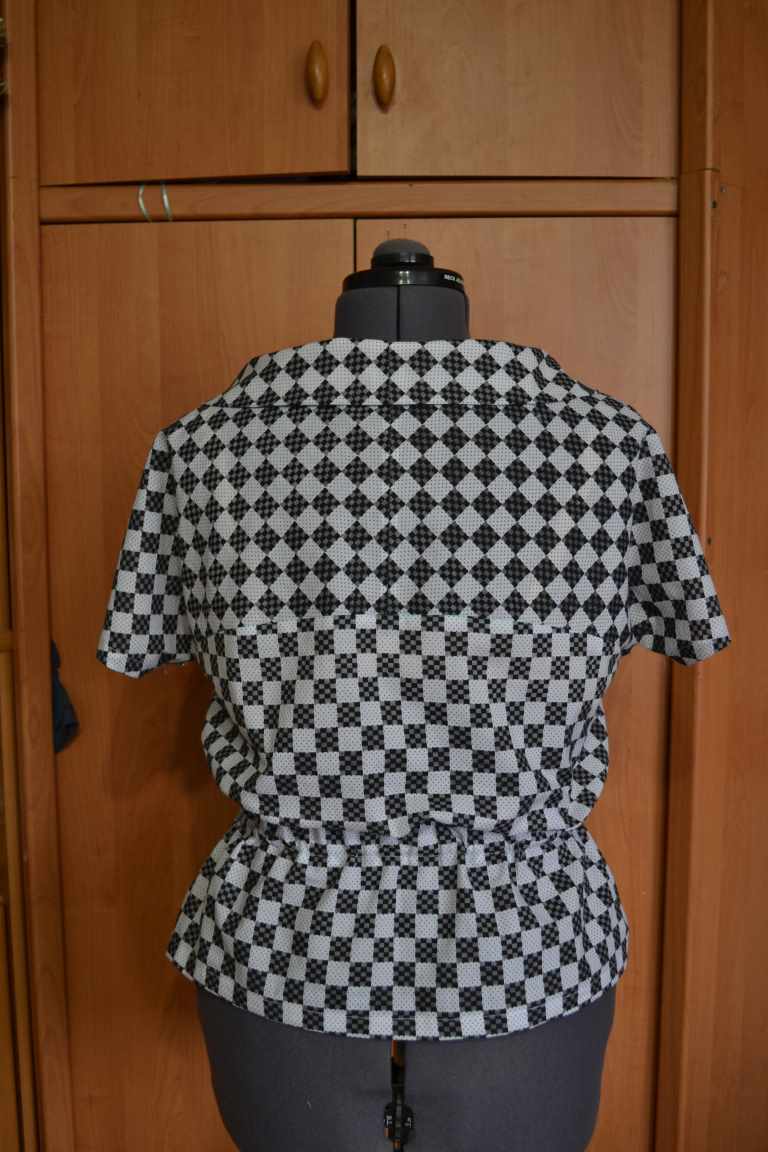 salserita Опубликовано 22 апреля, 2014 Автор Поделиться #1225 Опубликовано 22 апреля, 2014 Вчера дошила блузку из апрельской Бурды Тонкое х\б, из Индии привезла. Долго лежал отрез. А тут в Бурде клетчатая блузка...Намучалась я с этой тканью. Рисунок отпечатан криво. Зеркально ничего не совпадает. Мало того, ещё и клетка прямоугольная. Ползала я по ткани искала совпадения. Кое как из двух метров выискала. Пришлось детали кокетки спинки выкраивать как две детали и делать средний шов. Так же и воротник.Не слишком ткань ребит? Может что добавить? Ссылка на сообщение Поделиться на другие сайты Поделиться