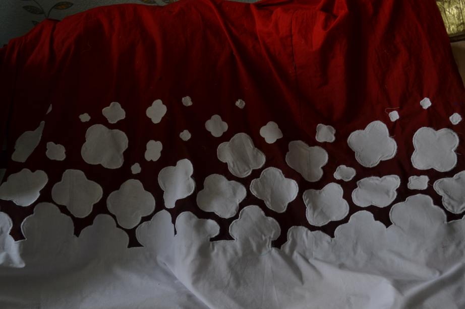 Но и это не всё. Края этих зубцов на картинке имеют красный кант! Пришивать такое, я отказалась сразу и предложила племяннице просто нарисовать акрилом!