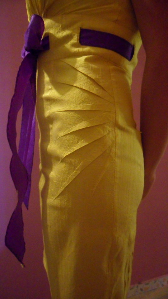 salserita Опубликовано 21 июня, 2011 Автор Поделиться #136 Опубликовано 21 июня, 2011 вот , сшила племяшке платье на выпускной вечер.Желтая шелковая тафта. натуральная. Цвет и фасон традиционно выбрала сама племянница. Я взяла выкройку из Дианы (такое же платье шила себе из бархата фото есть ранее) и всю её перековеркала))) Подгоняла долго и нудно. по триста раз снять одеть. Потом на ходу придумались вот такие вставки и "веера" сзади. изменила форму втачного пояса и сделала прорези под пояс как ранманы"в рамку" ))) как ни старалась одинаковые они у меня не получились. Уж не знаю что вышло в итоге...свои изделия вообще не могу объективно оценивать. Накосячила мне кажется воз и маленькую тележку.Но самое страшное что ткань после второй стирки села еще раз!!! Вообще я в ужасе...отпорола припуски но все равно не хватило. Я никак не ожидала что она сядет опять...Я точно её стирала перед раскроем. До стирки платье сидело без одной морщинки... А еще племяшка стала юбку тянуть вниз, когда натягивала на себя и оттянула немного что пузырь появился...вот и не знаю загладится или нет...завтра попробую устранить.Не ожидала всего этого. В общем расстроилась я.А Таньке все равно...радуется, довольная...аж светиться!!! Еще туфли украшу...потом покажу при параде все.Теперь критикуйте... Ссылка на сообщение Поделиться на другие сайты Поделиться