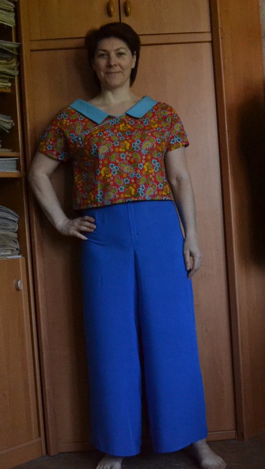 salserita Опубликовано 28 июня, 2015 Автор Поделиться #1735 Опубликовано 28 июня, 2015 Ещё брючки по той же выкройке, что и белые широкие.Сразу попробовала с разными блузками. Намучилась с тканью! Очень тонкий штапель, почти батистовой толщины. Перекашивается. Швы под пояс и сам пояс дополнительно по линиям швов проклеила флизелином, даже низ брюк. Иначе не получалось ровно подшить.А про глажку вообще молчу))) Гладишь одно место, мнётся другое))) Могу себе представить , что будет когда я из машины выйду в них)))Зато они невесомые!Да, девочки, посмотрите пожалуйста на 3 фото в цветасто-красном топе. Мне пойдёт такой топ в принципе? Я хочу к нему юбку солнце или полусолнце длинную в цвет отделки. Ссылка на сообщение Поделиться на другие сайты Поделиться